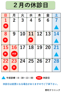 1月休診日のお知らせ